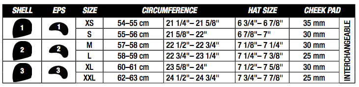 l 三種帽體大小搭配三種EPS組合